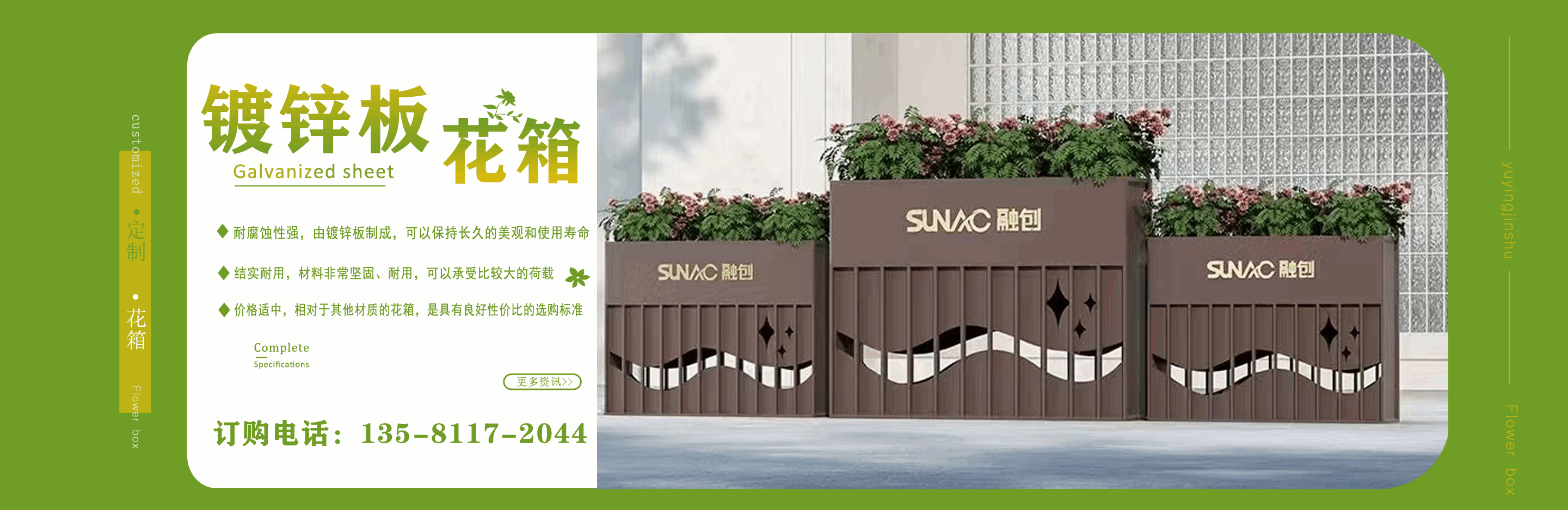 山東鈺盈金屬制品有限公司主營鍍鋅板花箱,道路隔斷花箱,定制花箱,戶外道路花箱,花箱座椅等產(chǎn)品,產(chǎn)品結構合理、性能優(yōu)良,具有強度高、耐腐蝕、抗老化、隔熱隔音、節(jié)約能源、外形美觀、使用壽命長等優(yōu)點,深受國內(nèi)外客戶認可。 我們根據(jù)客戶所在城市的文化特征,制造出符合當?shù)爻鞘形幕瘹庀⒌淖匀涣Ⅲw、觀賞性強的花箱產(chǎn)品成為城市里一道靚麗的風景線。 公司實行誠實、公正、守信、價格合理、平等互利。 公司憑借雄厚經(jīng)驗實力,恪守誠信為本的原則,得到了眾多客戶的信賴,并在業(yè)界獲得良好的口碑。建立了穩(wěn)固的合作關系,隨著業(yè)務的不斷發(fā)展和壯大,合作伙伴的范圍也在不斷擴大。我們熱情盼望與您的合作,為社會的可持續(xù)發(fā)展獻上一份努力。...